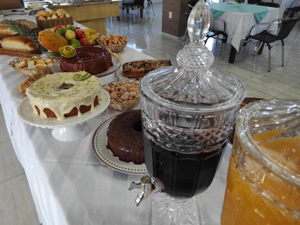 Buffet completo servido no restaurante do Hotel com diversas variedades de alimentos. Um verdadeiro Banquete.